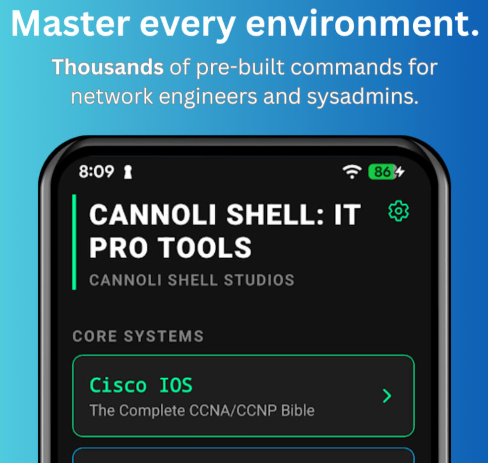 As the founder of Cannoli Shell Studios, I build tools to help out my fellow techs. This unique hybrid of development and operations allows me to create custom automation and specialized applications to solve complex infrastructure challenges.